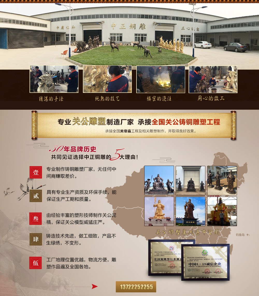 河北中正鑄銅工藝品制造有限公司是一家專業(yè)制作鑄銅動物雕塑的生產(chǎn)廠家。擁有完善、大型、先進的鑄造生產(chǎn)設(shè)備,并由數(shù)位經(jīng)驗豐富的高級鑄造技師指導(dǎo)生產(chǎn)及制作。我們公司主要鑄造動物銅雕、銅獅子、銅麒麟、銅牛、銅馬、銅鹿、銅大象等,可按客戶提供動物銅雕圖片訂做、加工動物銅雕,動物銅雕塑,我們的產(chǎn)品做工精美,造型生動,用銅扎實,質(zhì)量有保證。